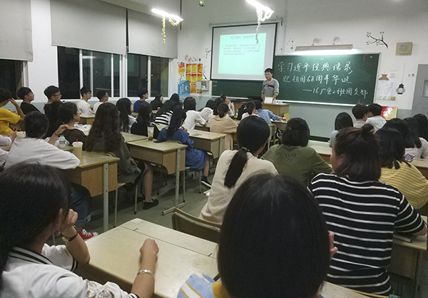 9月24日,校团委组织全校青年学生开展了“学习习近平经典语录,迎祖国68周年华诞”团日活动,大家通过研读《之江新语》《习近平关于青少年和共青团工作论述摘编》等资料,认真学习了习近平总书记的经典语录。
