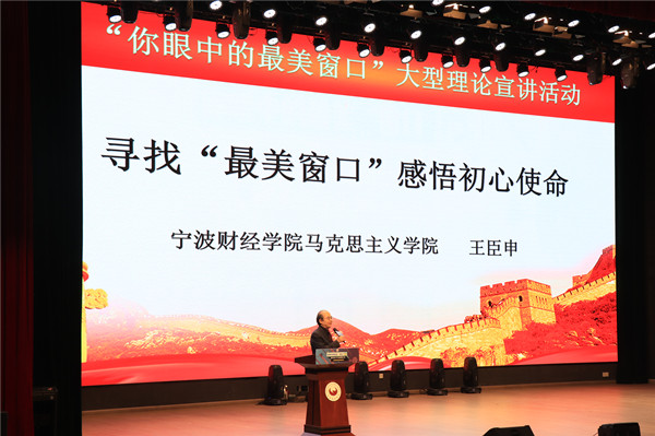 4月30日上午,“你眼中的最美‘窗口’”大型理论宣讲活动走进我校。学校马克思主义学院院长王臣申教授为大家带来题为《寻找“最美窗口” 感悟初心使命》的理论宣讲。本次活动在象山校区实验剧场进行的同时,还以融媒直播的方式在浙江卫视中国蓝新闻平台进行同步直播。