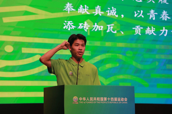 会上,153名青年志愿者共同签订了《志愿者告知函和承诺书》,并集体宣誓。我校19出版2班的王知慧代表153名青年志愿者发言。与会领导为参与本次赛事的志愿者代表授予旗帜,吹响了出征的号角。