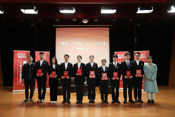 为深入学习宣传党的十九届六中全会精神,积极响应全省全市“六讲六做”大宣讲活动,学校党委宣传部、马克思主义学院、校团委等单位与海曙区相关职能部门通力合作,共建宣讲工作室。活动上,齐海峰、吴勇等与会领导为我校相关负责人授予了“‘曙说×宁财院’00后宣讲工作室”“新时代名师宣讲工作室”的牌匾,为首批00后理论宣讲员代表颁发了聘书。